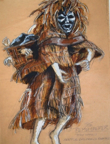 Costume sketches and newspaper clipping form Seattle Post Intelligencer, 1994
